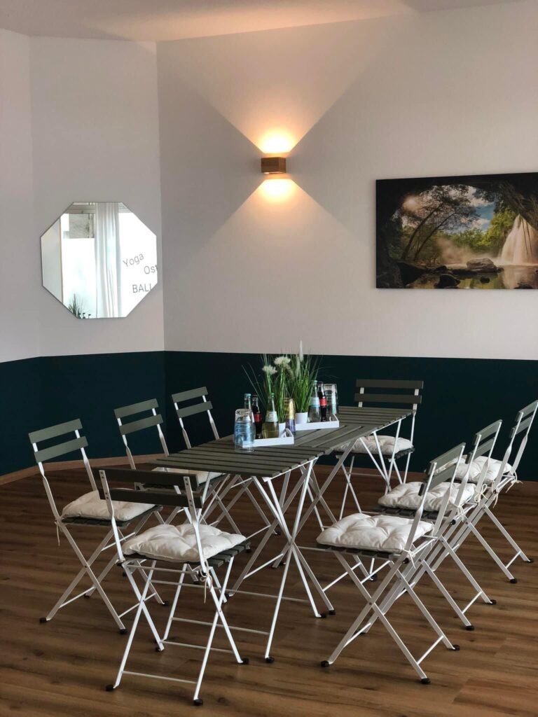 Neben dem Hauptraum gibt es noch einen Materialraum mit Teeküche und ein WC. Das benötigte Inventar für Ihre Veranstaltung stellen wir Ihnen auf Anfrage gerne zur Verfügung und stellen alles nach Ihren individuellen Wünschen und Bedürfnissen zusammen. Die Personenzahl ist begrenzt.